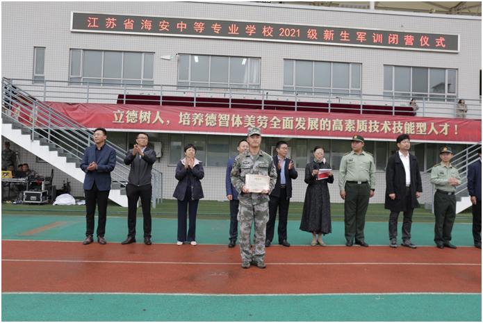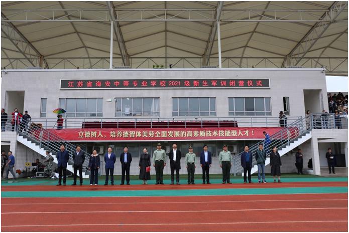 10月15日上午,海安中专在学校操场举行2021级新生军训闭营仪式。海安市人民武装部副部长张前进,市教体局党组副书记、海安中专党委书记、校长杭华,市教体局基教科科长郑明达,海安中专党委委员、副校长唐永红,党委副书记、纪委书记徐培根,党委委员、副校长张兵等学校校级负责人及相关部门负责人出席仪式,全体学员、教官和班主任参加活动。