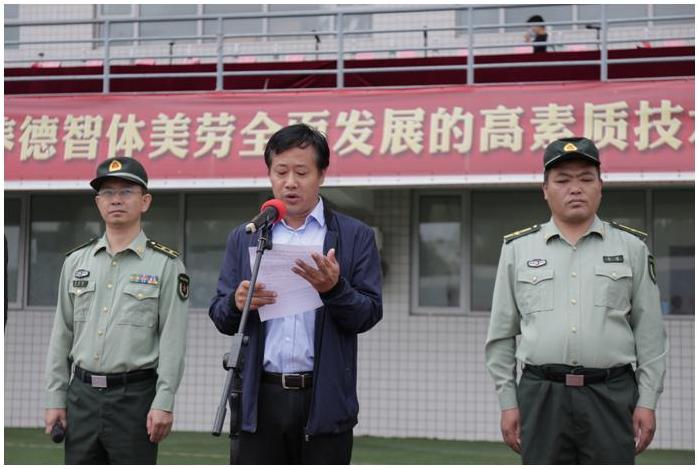 杭华在仪式上发表讲话,他代表学校向关心学校事业发展的各级领导表示衷心的感谢!向一周以来付出辛勤劳动的教官们致以崇高的敬意!向任劳任怨参与本次军训的老师们表示深切的问候!向顺利完成本次军训任务的全体同学表示真诚的祝贺!