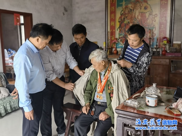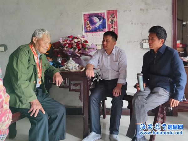 重阳节期间,大公镇社区教育中心老师来到杨老家中,开展寻访英雄活动。全体老师对老兵的无私奉献表示崇高的敬意,并与老英雄亲切地拉家常、了解生活情况,祝愿其身体健康。