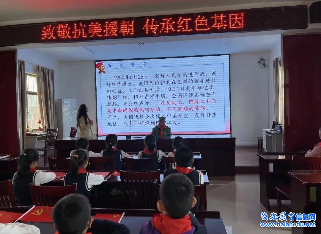 接着,红色宣讲员曹珊老师给孩子们讲述了抗美援朝战争的历史背景。抗美援朝战争是20世纪50年代初,中国人民解放军为援助朝鲜、保卫中国安全而进行的一场战争。抗美援朝纪念日为10月25日。