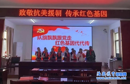听唐爷爷讲述完自己的经历,孩子们给唐爷爷带来了红色节目表演,依次讲述了《烈火中的邱少云》、《英雄儿女杨根思》、《英雄儿女黄继光》的故事,最后孩子们合唱了《红领巾心向党》。“从小学先锋,长大做先锋!请党放心,强国有我!”的誓言深深地刻在了队员们的脑海中!