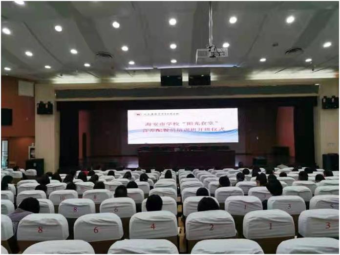 Δ海安市学校“阳光食堂”营养配餐员培训班是海安中专和教体局联合举办的。