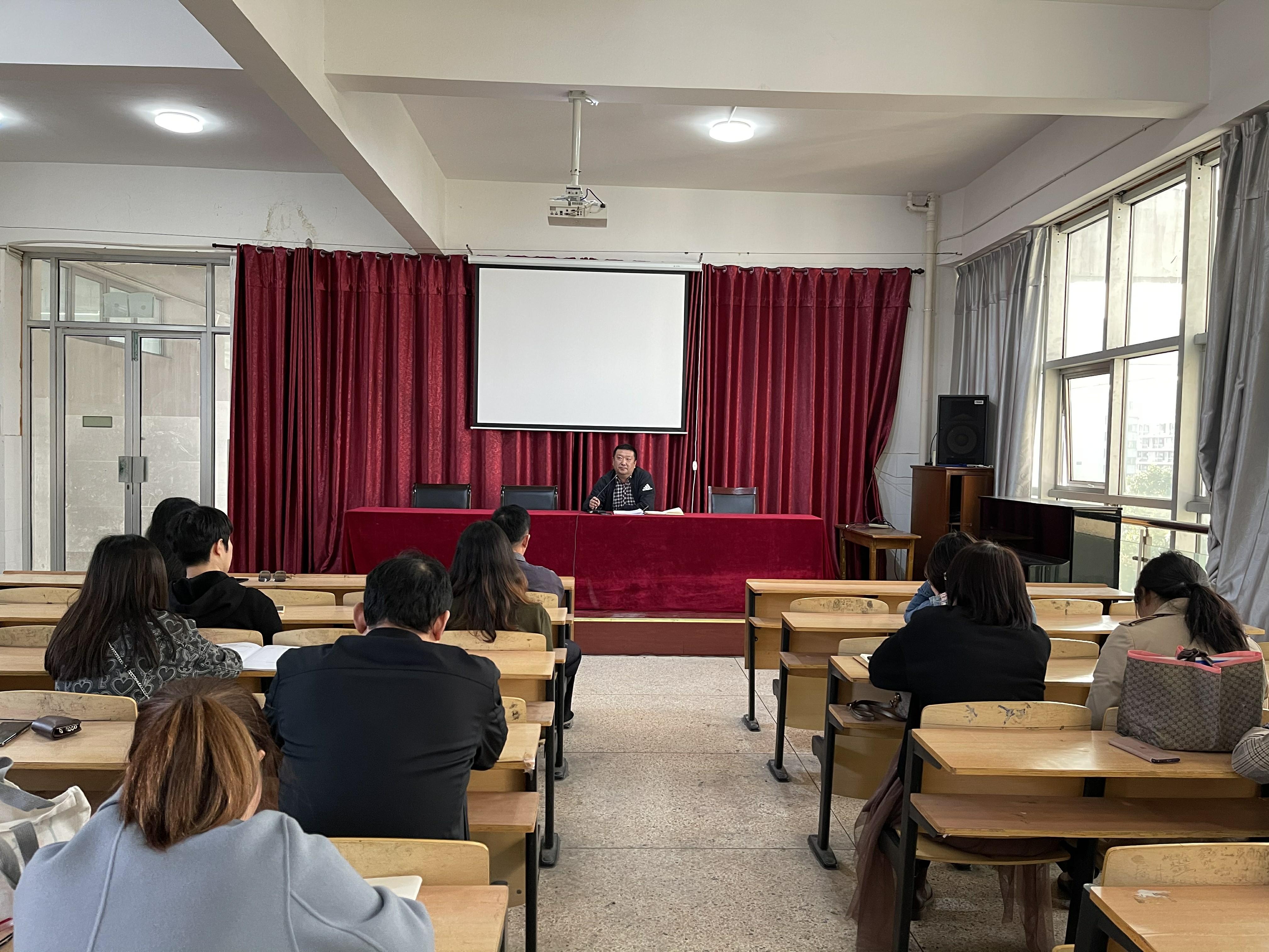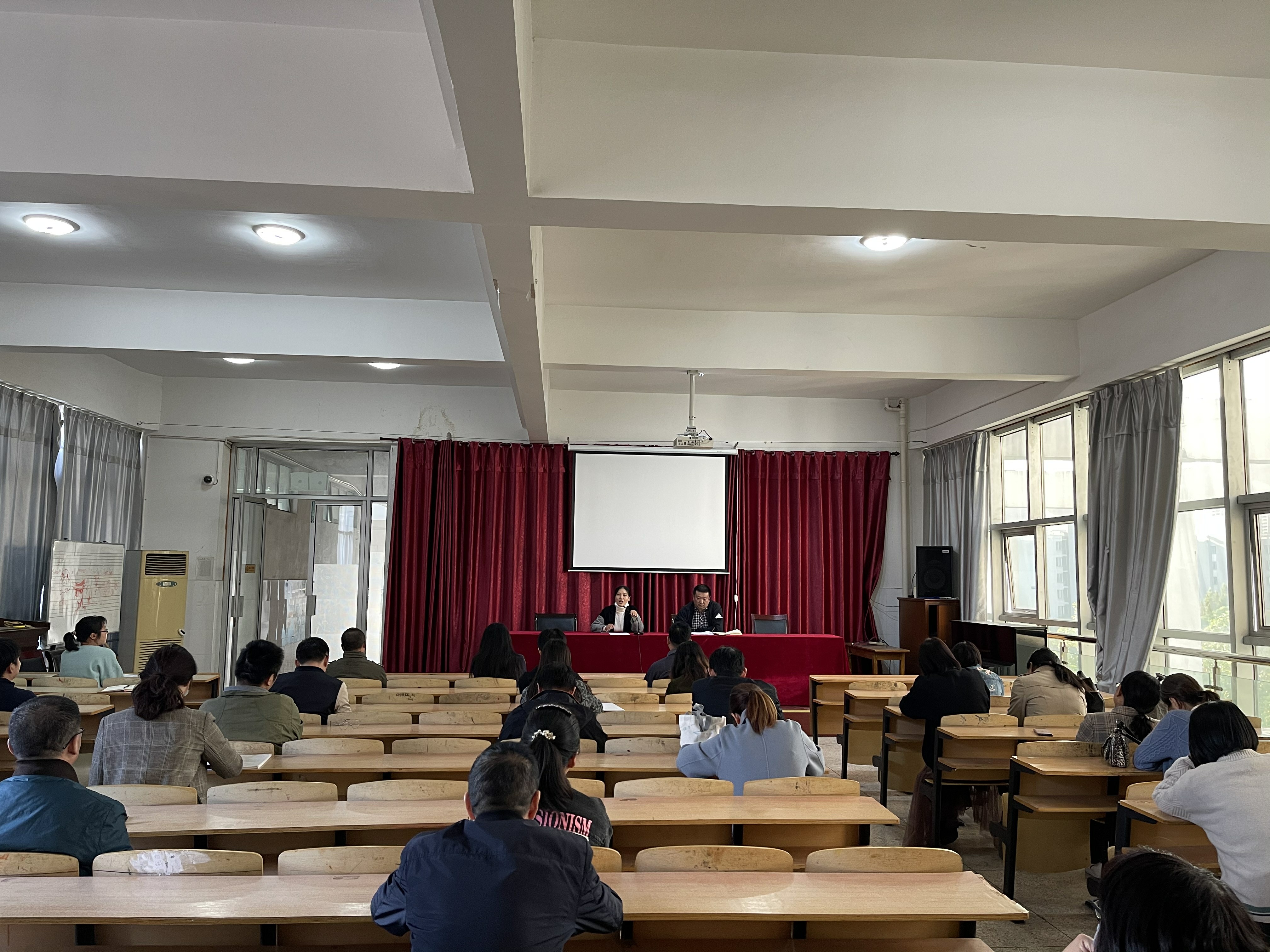 首先艺术系实训主任朱海燕向教师们传达了学校考勤工作会议精神。针对考勤异常情况、请假流程及佐证材料等几方面的问题做出了解读。