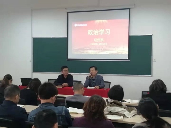 为切实增强广大教师的规矩意识、法纪意识,贯彻执行“制度管人、流程管事”的管理模式,10月18日下午,经贸系在7号楼四楼会议室组织全体教师召开政治学习例会,会议由胡高贵主任主持,学校党委委员、副校长唐永红到会并讲话,全体教师参加会议。