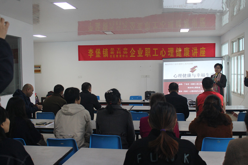 为引导企业职工正确面对工作和生活中的压力,促进职工身心健康。10月20日上午,李堡镇社区教育中心、总工会、老科协联合邀请了应用心理学学士、国家二级心理咨询师丁忠花老师,为南通倍顺服饰有限公司、南通明华服饰有限公司全体职工分别上了题为《心理健康与幸福生活》《健康身心灵幸福人生路》的专题心理讲座,近一百人参加了本次活动。