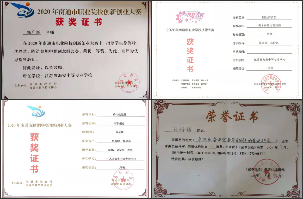 海安中专多年来一直倡导聚焦教育教学真问题开展有意义的行动研究,鼓励青年教师积极申报县级以上课题,组织青年教师观摩省市级课题交流会,组织召开县级课题研讨会,并就如何开展课题研究进行专项指导。18名2020年度县级立项微型课题主持人及其他自选课题主持人认真思考、潜心钻研,在省级以上报刊发表论文近15篇,参加市省级比赛有23人次获奖。
