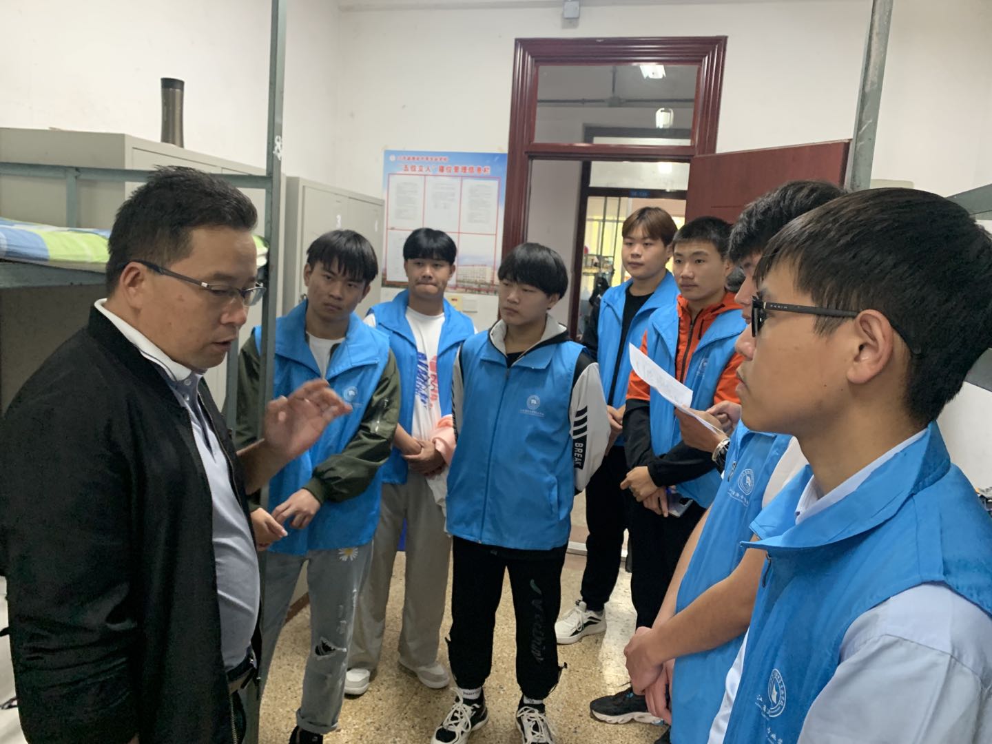 张建伟对同学们说,“我们大家来自全国各地,有缘相聚在海安中专,住在同一栋楼里,多少个日日夜夜将会在这里度过。十九号楼就是我们自己的家,我们一定要把家里收拾的干干净净,把家里归置的整整齐齐,从而愉悦我们的身心,强健我们的体魄。同时希望大家能够和睦相处,无论是来自云南的,还是广西的,又或是河南的,都应该把彼此当做家人一样来对待,日后的我们一定会在这里收获珍贵的同学情谊”。