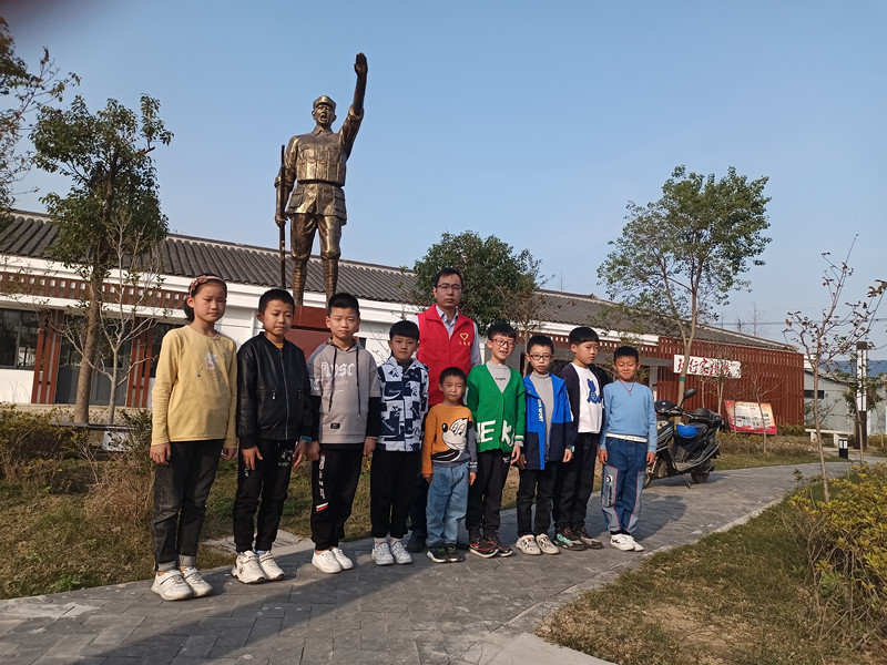围棋活动结束后,杨庄村教务主任姚冬琴和社区教育中心唐国平带领孩子们参观了知行实践馆,讲解了三打李堡的故事并合影留念。