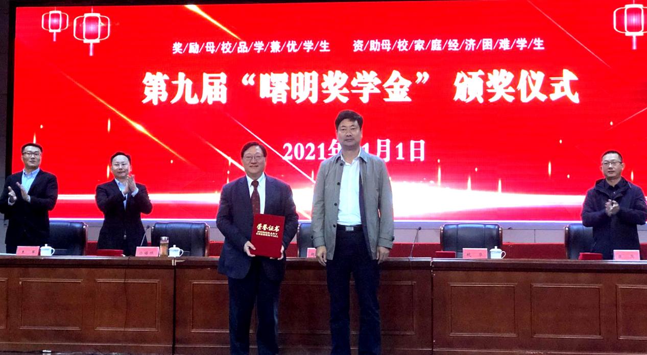 2021年11月1日上午,海安中专图文信息楼二楼报告厅爱心涌动、情意浓浓。南京大学人文社会科学资深教授、南京大学商学院名誉院长、南京大学行知书院院长、博士生导师赵曙明为学校77名品学兼优、技能突出和家庭经济困难学生颁发了第九届“曙明奖学金”。