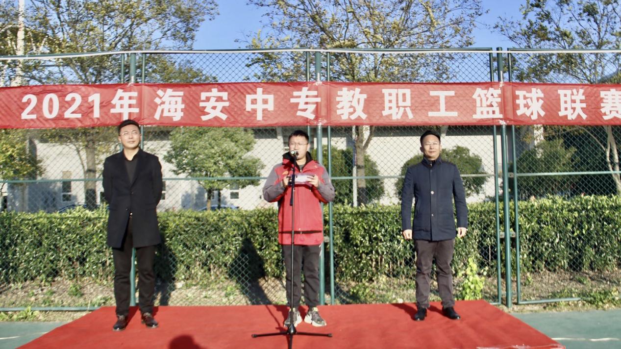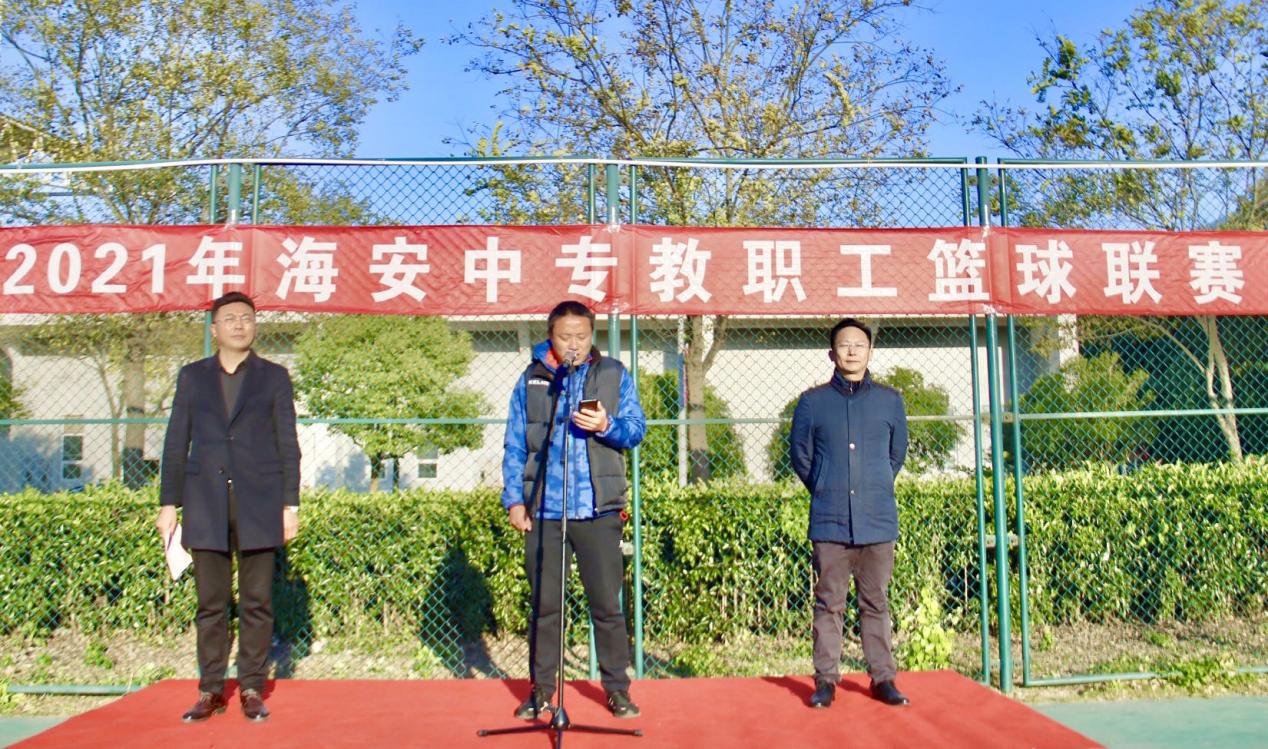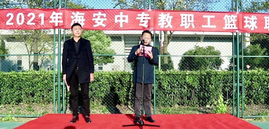 11月10日,海安中专举行2021年教职工篮球联赛开幕式暨首轮比赛。学校党委副书记、纪委书记徐培根出席开幕式并讲话。活动由工会主席、校办主任丁宏军主持。