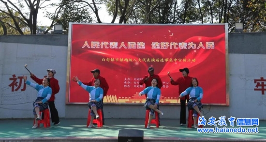 白甸镇文化志愿者以选举为主题自编自演了群口快板、歌舞等节目,用群众喜闻乐见的形式宣传选举,吸引大量观众驻足观看。现场咨询、知识问答,更是让不少群众纷至沓来。