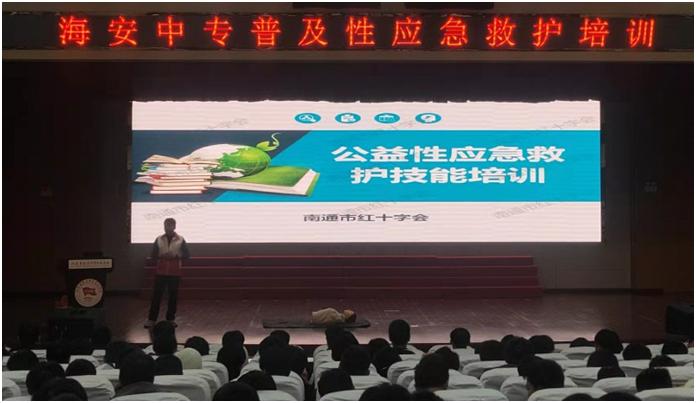 为提高学生紧急救护知识,提高紧急救护技能,11月17日,海安中专邀请海安市红十字会工作人员来校为师生进行“公益性应急救护培训”,400多名师生参加培训。