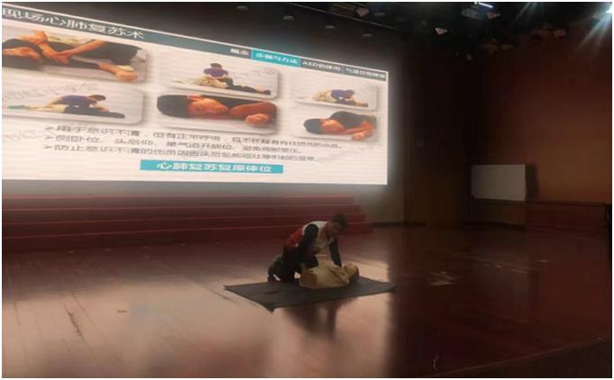 活动中,红十字会工作人员详细讲解“急救常识”“心肺复苏”“呼吸道异物堵塞”“烧伤救护”等应急救护知识,通过现场教学、真人模拟示范、受训对象亲身体验等方式,为师生讲解了心肺复苏操作流程、AED除颤仪的使用方法及气道异物梗阻、创伤救护、常见急症、意外伤害急救处置等急救技能,并针对学校突发事故中容易出现的如运动受伤后如何快速止血、外出血紧急包扎、骨折固定和搬运以及急救中如何调整体位、打开气道、判断呼吸、人工呼吸、胸外心脏按压等应急救护技能进行了现场操作演练。讲座中穿插了学生问答和模拟训练等环节,增添了现场活跃气氛。