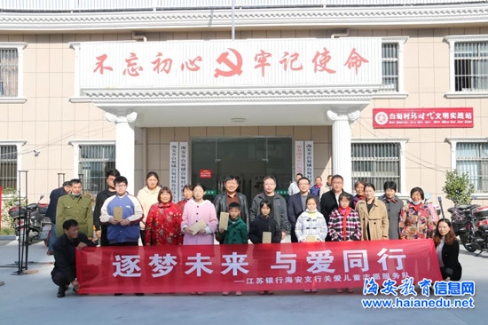 11月20日上午,江苏银行海安支行志愿服务队联合白甸村居民学校开展“逐梦未来,与爱同行”关爱留守儿童志愿服务活动,为白甸村留守儿童送去冬日暖心慰问。江苏银行海安支行副行长唐忠年、办公室主任刘俊华,白甸镇综合文化服务中心负责人颜开虎、白甸村党总支书记郭永耕及相关村妇联主席、文化干事参加活动。