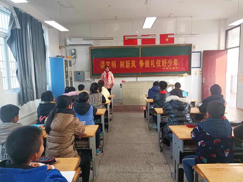 曲塘镇创新村居民学校“讲文明,树新风,争做礼仪好少年”主题教育活动走进章郭小学