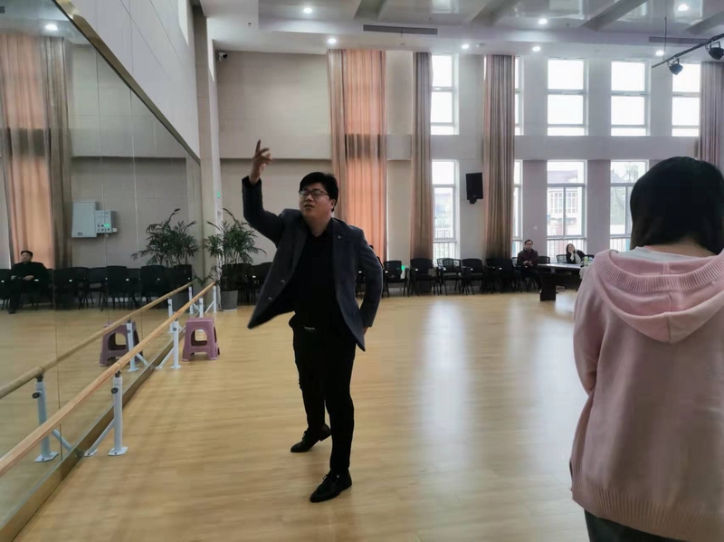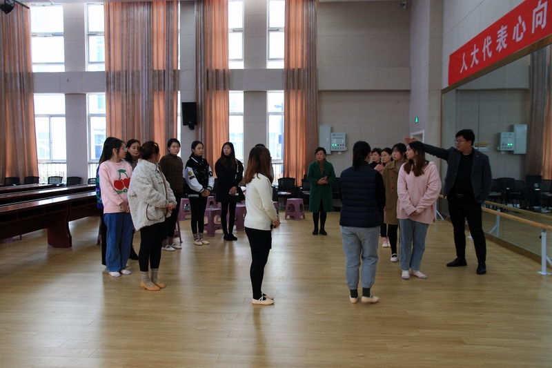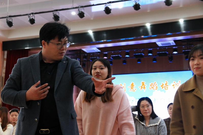 杭磊老师结合基本动作组合、队形变化、节奏等基本技法,边讲解边示范,特别强调要注意舞蹈表情神态,提高表现力。
