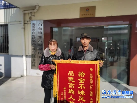 12月3日上午,失主吴永兰精心制作了“拾金不昧风格高,品德高尚人称颂”的大红锦旗,邀请傅舍村党总支书记赵志宏、邹冯村党总支书记俞爱娟,共同将锦旗赠予冯增兵表示感谢。邹冯村党群服务中心里,前来办事的村民和指导工作的镇工作人员不约而同地为冯增兵送上了热烈的掌声。这正是:寒冬处处有温暖,人人弘扬正能量。