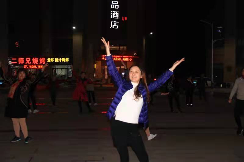12月10日晚,在李堡镇万隆广场,伴随着欢快的音乐,30多名居民翩翩起舞,志愿者曹丽华老师受社区教育中心邀请在现场精心指导。