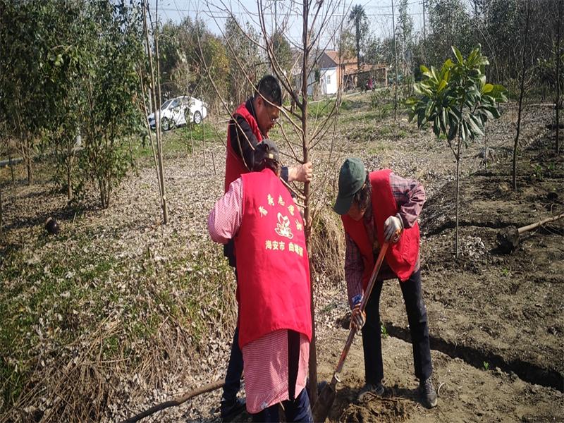 在植树现场,15名志愿者们参加了此次活动,大家个个热情高涨,兴致勃勃地投入到植树活动中。有的扶苗,有的培土,有的浇水,各个环节衔接有序,配合默契,充分发扬了团结、互助、友爱的精神。一上午的时间里,志愿者们就将事先准备好的500洛雨杉树苗一一种下,用实际行动为村居增添了一片生机勃勃的绿色。