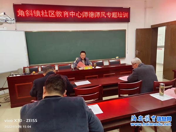 为加强教师师德师风和纪律作风建设,增强全体教师立德树人奋进担当的时代精神,3月8日角斜镇社区教育中心召开全体教师师德师风培训会。