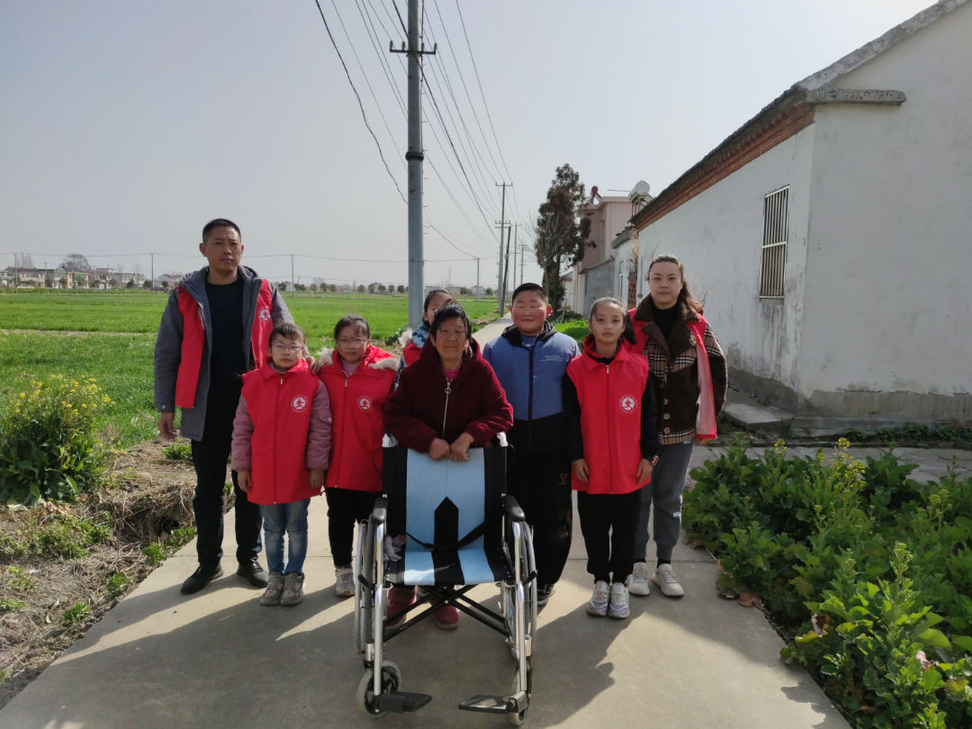 接着学雷锋队伍来到了村里的一位腿脚不方便的残疾老人家中,趁着着室外明媚的春光将老人搀扶到室外,推着轮椅陪同老人漫步走在乡间的小路上。一路上小小志愿者们帮助老人梳理头发,整理身上的衣物,叽叽喳喳的像一群可爱的小天使般给老人带去了欢声和笑语。