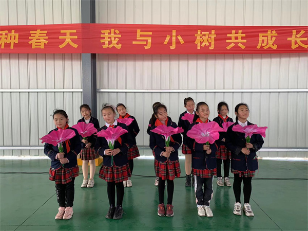 植树仪式在辅导员和队员们诵读春天的诗词中拉开了帷幕!学校党支部书记、校长常永泉为植树活动致辞,他希望队员们和春天同行,争做绿色小卫士,让天空更蓝,地球更绿,家园更美!