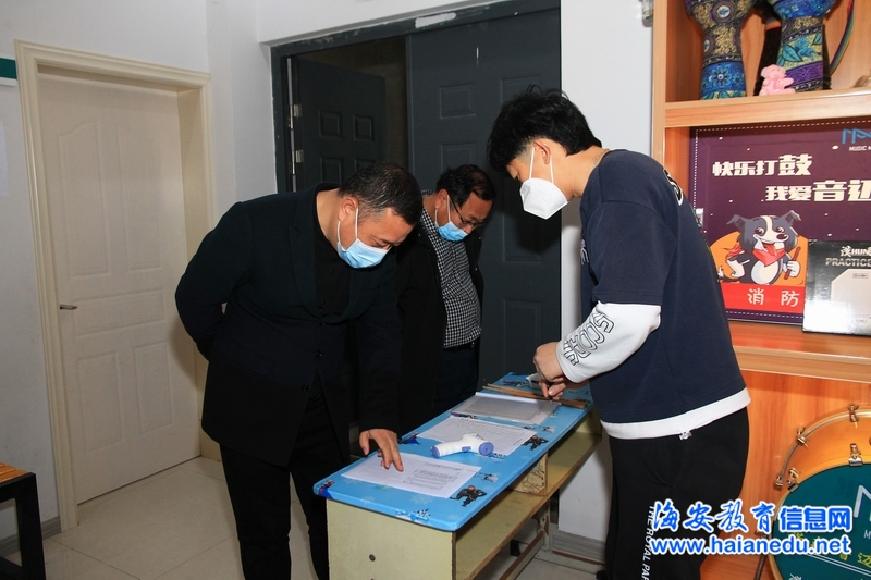 检查组重点检查了4家非学科类培训机构制度落实情况、场所消杀和体温检测记载、教职员工和学生家长的“两码”查验、防护物资储备情况。盛正才对某家培训机构的体温检测记载不全现象提出批评,现场要求整改,并下发整改通知书。