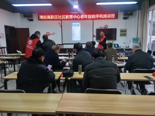 为了解决海安街道离退休老干部支部书记使用智能手机编辑文档传送资料的问题,3月21日至3月23日,海安高新区社区教育中心在一楼活动室为海安街道11名老支部书记进行了为期三天的培训。