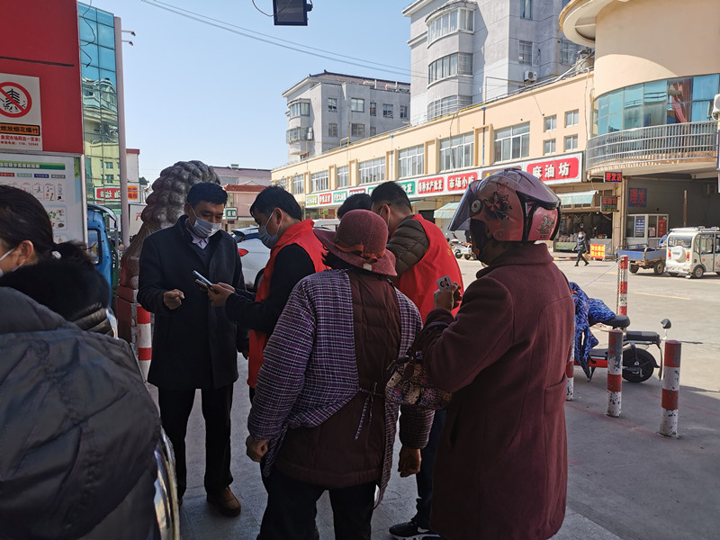 这两天疫情防控压力陡增,发现新冠病毒感染者的地点离我们越来越近,海安市目前各个公共场所都要查看双码。社区教育中心志愿者发现上午李堡市场门口排队的人员较多,而且大多数是老年人。老人们有的不会查找双码,有的是子女帮忙做的截屏,但不是当天的,有的使用的是老年机,提供不出双码,造成市场门口人员进出速度缓慢,检查人员和排队的人都有苦难言。李堡社区教育中心志愿者主动参与到疫情防控工作中,到菜市场为老年人提供帮助。