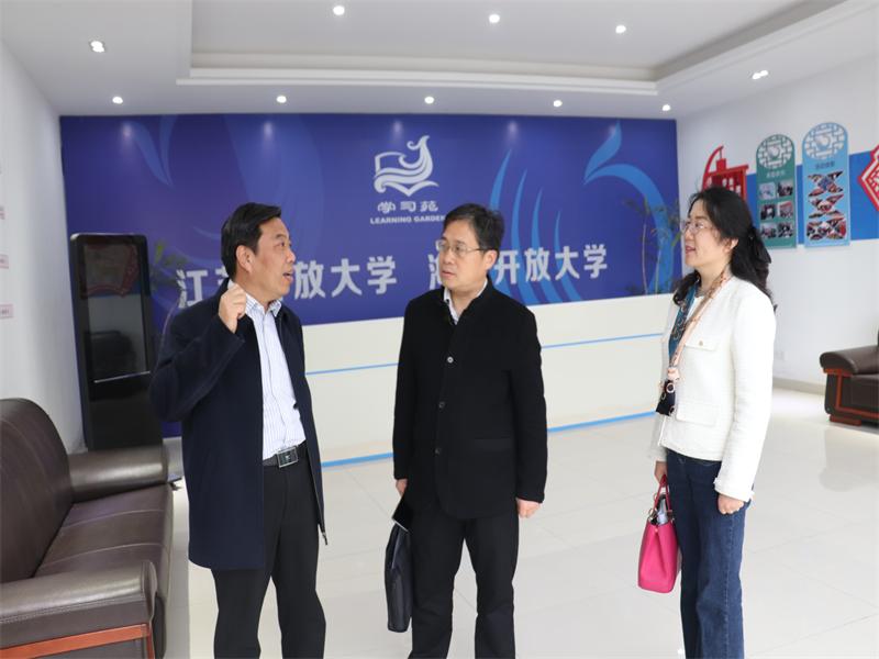 丁忠荣一行首先实地察看了社区教育中心的阵地、硬件设施和教育老物件陈列室、校史陈列室、“三农”名师工作室等特色建设基地。