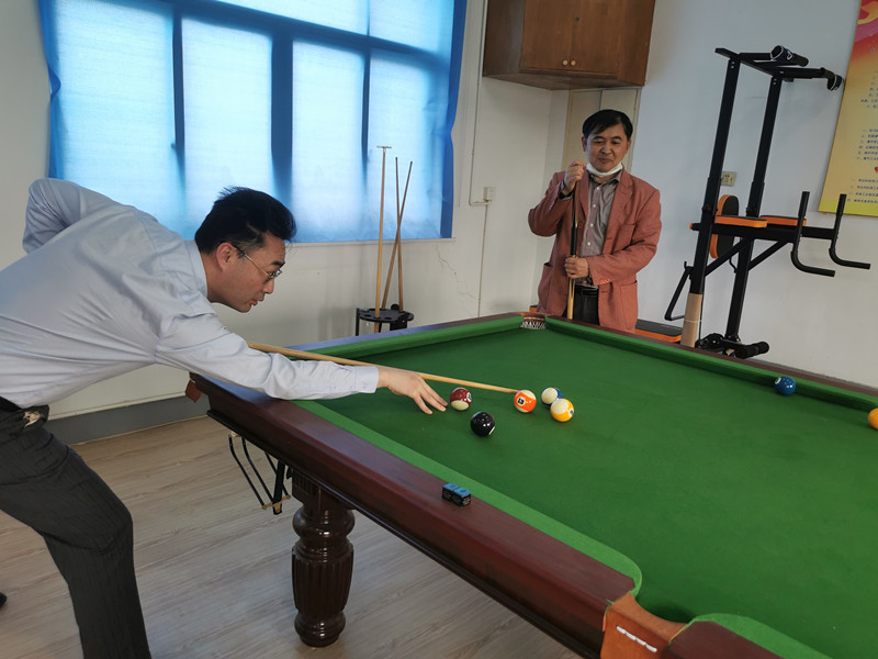 中式台球比赛开始了,大家有模有样的架杆、瞄准、出杆,虽然技术没那么纯熟,但玩的是乐趣,愉悦的是身心。