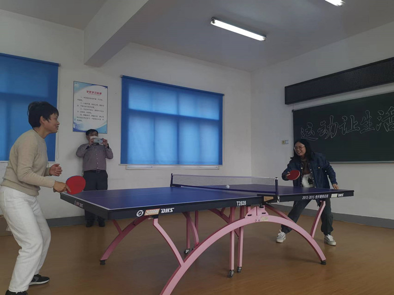 乒乓球台前,只见银色小球忽高忽低、忽左忽右,在球台上飞来飞去,选手时而轻轻吊个“近小球”,时而来个“端线长球”,时而猛扣一板,“杀气”十足,大家在紧张激烈的比赛中释放了自我。