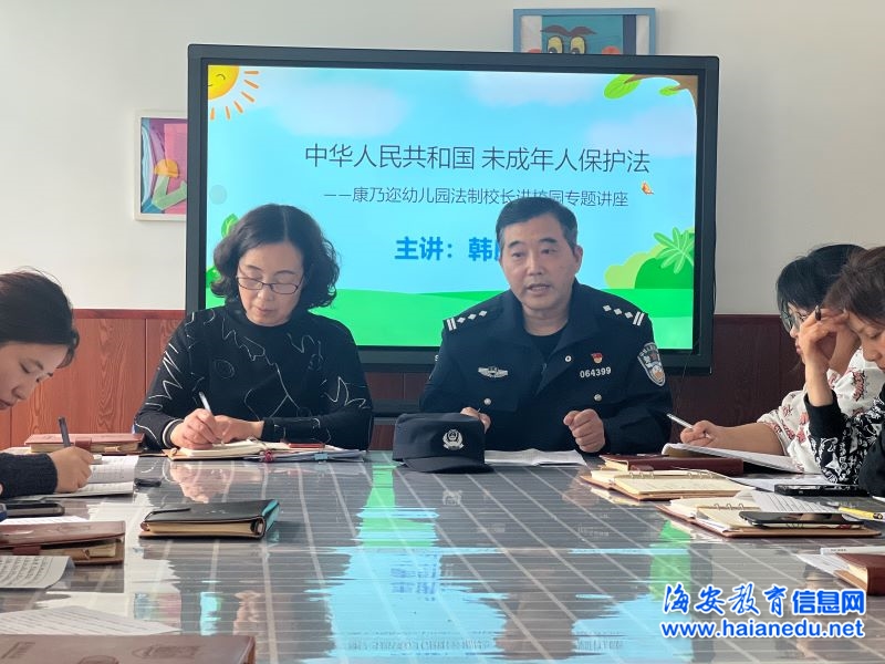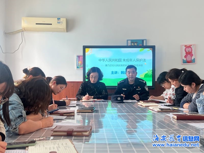 2022年4月22日,为保护广大未成年人合法权益,普及未成年人的法律常识,加大《中华人民共和国未成年人保护法》的宣传力度,切实加强教师队伍建设,全面提高教师职业道德素养,增强师德师风建设的时效性。海安市康乃迩幼儿园开展了《中华人民共和国未成年人保护法》法制校长进校园专题普法学习活动。