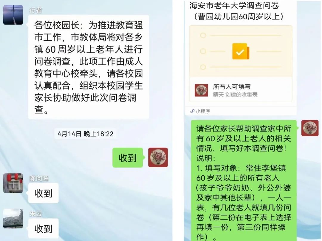 4月15日起全体教师对接相应的学校、村居开展调查。目前,调查问卷工作正有序进行,为老年大学李堡分校顺利开班提供数据。根据调查意愿初步统计情况,李堡镇社区教育中心拟定开设器乐班、智能手机培训班。