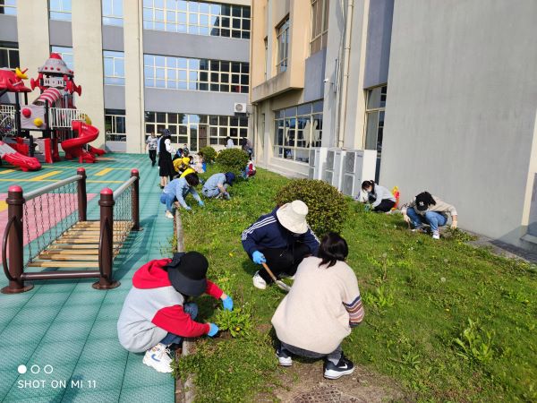 习近平总书记说:“人世间的美好梦想,只有通过诚实劳动才能实现。”4月30日,在“五一”国际劳动节到来之际,曲塘三之三幼儿园党支部发起了“除草护绿”志愿服务活动,以别样的方式迎接五一节的到来。