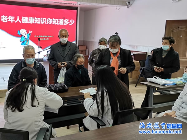 活动中,医务志愿者为参加活动的老年人宣讲疫情防控、营养膳食、运动健身、常见病防治等科学知识,耐心解答他们日常生活中的健康问题,对一部分有慢性疾病的老人,开展个别问诊,帮老人分析病情,提出科学的治疗方案。
