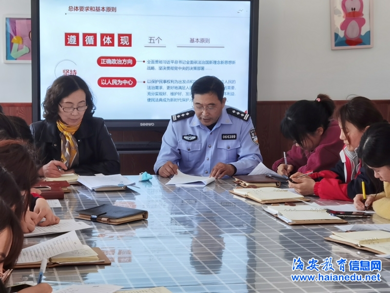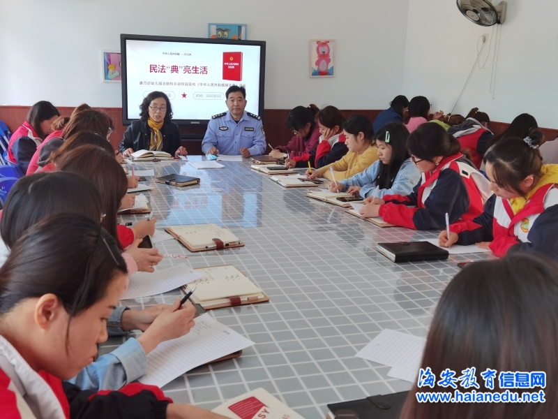 为了进一步增强全体教师的民主法治意识,提升法治观念,全面做好《民法典》的宣传教育工作,五月中旬,康乃迩幼儿园邀请法制校长韩良圣入园开展了“民法典亮生活”为主题的宣传培训活动。
