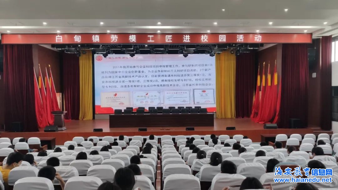 为进一步充分发挥劳模工匠精神引领和示范带头作用,近日,白甸镇工会开展了劳模工匠进校园活动,活动邀请南通市劳动模范、江苏四新界面剂科技有限公司的王利伟通过视频的方式为学生们做宣讲。