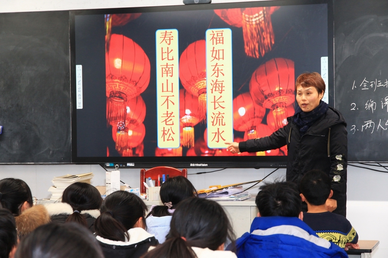 社区教育中心校长储美琴从春联的起源、发展、分类以及历代名人春联逸事讲起,结合动画播放,系统而全面阐述了年节习俗与春联的起源、发展及分类。深入浅出地介绍了当地过年的民俗,其中关于如何正确贴春联、贴福字的典故以及春联撰写的禁忌,学生们很感兴趣。储校长提醒同学们上下联不要贴反了,并和同学们一起温习了区分上下联的方法。